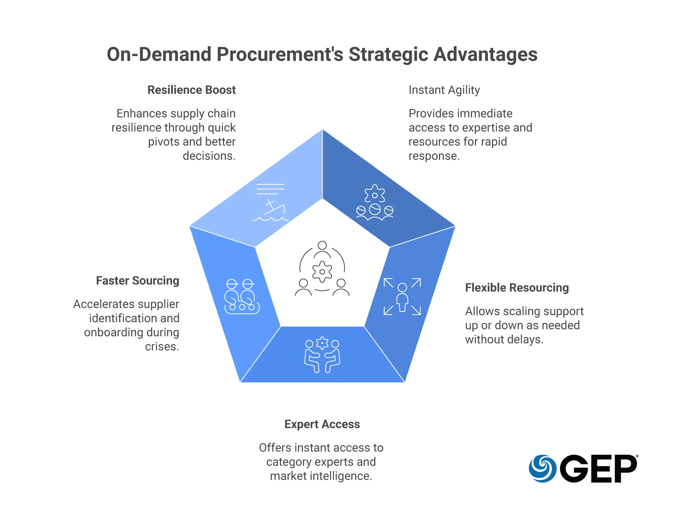 Third is scalability. Organizations can increase procurement support when sourcing activity rises and reduce it once conditions stabilize.