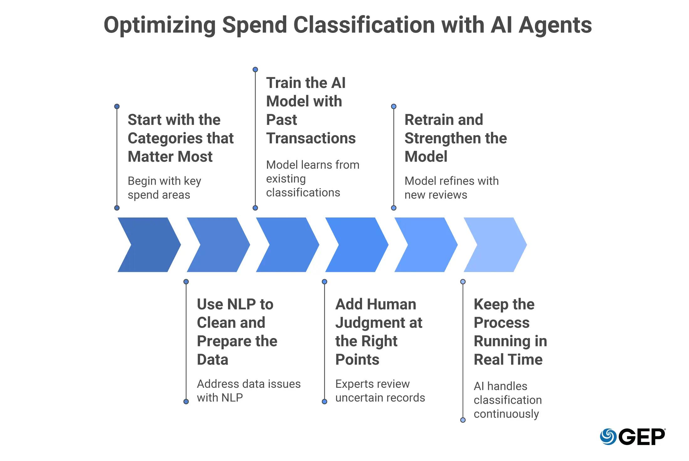 The gap becomes even harder to manage as suppliers grow and business scales across geographies. This is where integrating an AI agent into spend classification makes an impact, particularly for multi-enterprise companies that require speed and accuracy at scale.