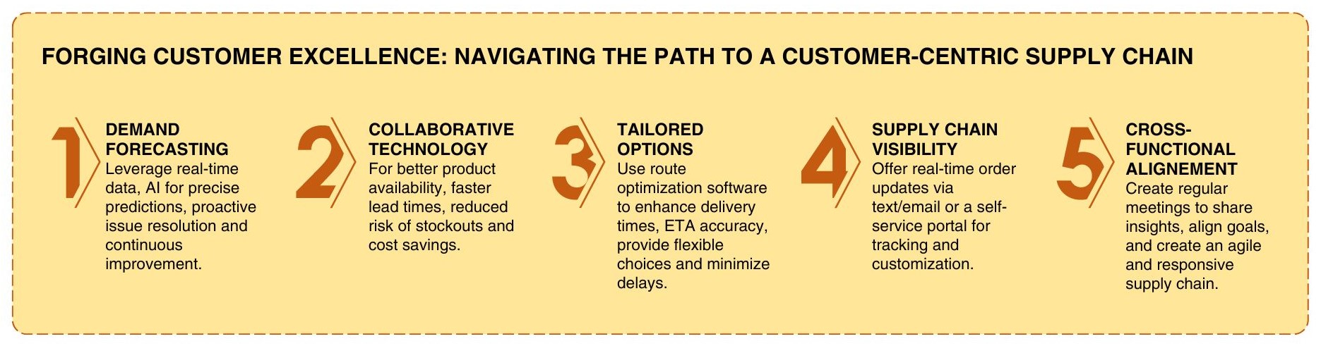 Crafting a customer-centric supply chain involves a multifaceted approach that integrates data-driven decision-making, seamless collaboration, personalization, and supply chain visibility. By investing in these actionable strategies, organizations can build a robust supply chain that adapts to customer demands, ensures timely deliveries, and enhances overall customer satisfaction. Embrace customer-centricity as a core philosophy and leverage the power of data and collaboration to create a supply chain that stands out in today's competitive landscape.